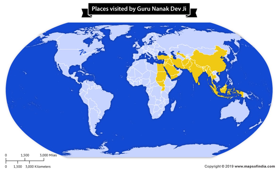 To spread the message of oneness and to break barriers across faiths by engaging in spiritual dialogues, the Guru travelled far and wide during the 15th and 16th centuries. From Mecca to Haridwar, from Sylhet to Mt Kailash, Guru Nanak visited hundreds of interfaith sites related to Hinduism, Islam, Buddhism, Jainism throughout his journeys. Some of the sites include: Mausoleum of Bahauddin Zakariya in Multan, Dargah Baba Farid in Pakpattan and Hinglaj Mandir, Balochistan (Pakistan); Mount Kailash (Tibet); Imam Reza Mausoleum (Iran); Kandahar and Khost (Afghanistan) and Nuwara Eliya (Sri Lanka)....